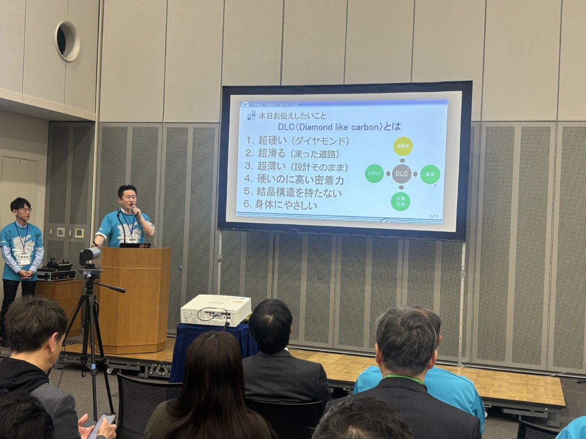 HOME > ニュース > お知らせ > 2026年2月10~11日に開催された「デンソー飛翔会展示会」に出展いたしました。 NEWS RELEASE ニュース 2026年02月26日お知らせ 2026年2月10~11日に開催された「デンソー飛翔会展示会」に出展いたしました。 2026年2月10~11日に「デンソー飛翔会展示会」がデンソー本社5号館で開催され、当社も出展いたしました。 今回の出展では、当社のコーティング技術を中心に展示を行いました。 スタートアップ企業と直接意見交換する大変有意義な機会となりました。 また、社長の川嵜が飛翔会企業によるリバースピッチに登壇しました。